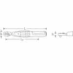| Merilno območje N·m | Merilno območje cN·m | MA N·m | Maksimalna vrednost N·m | Scale division ft-lb | Ločljivost skale in-lb | Zunanje štirirobo vpetje (v palcih) | Dolžina mm (L) | Širina mm (b) | Višina mm (h) | Vrsta baterije | LF | Teža s kovčkom |